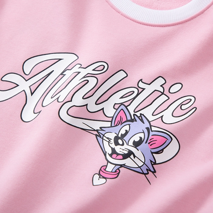 • Hoạ tiết: In hình chú mèo cùng chữ trước ngực, sọc 2 bên cánh tay