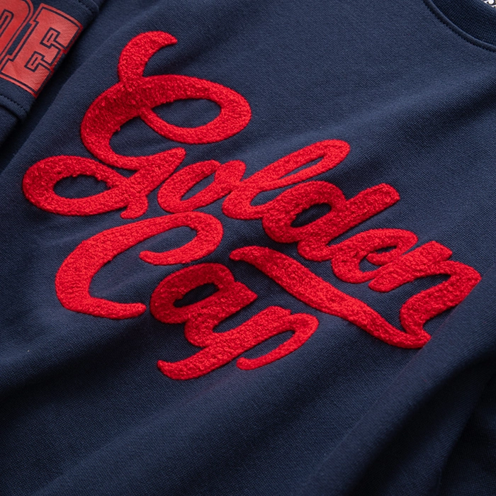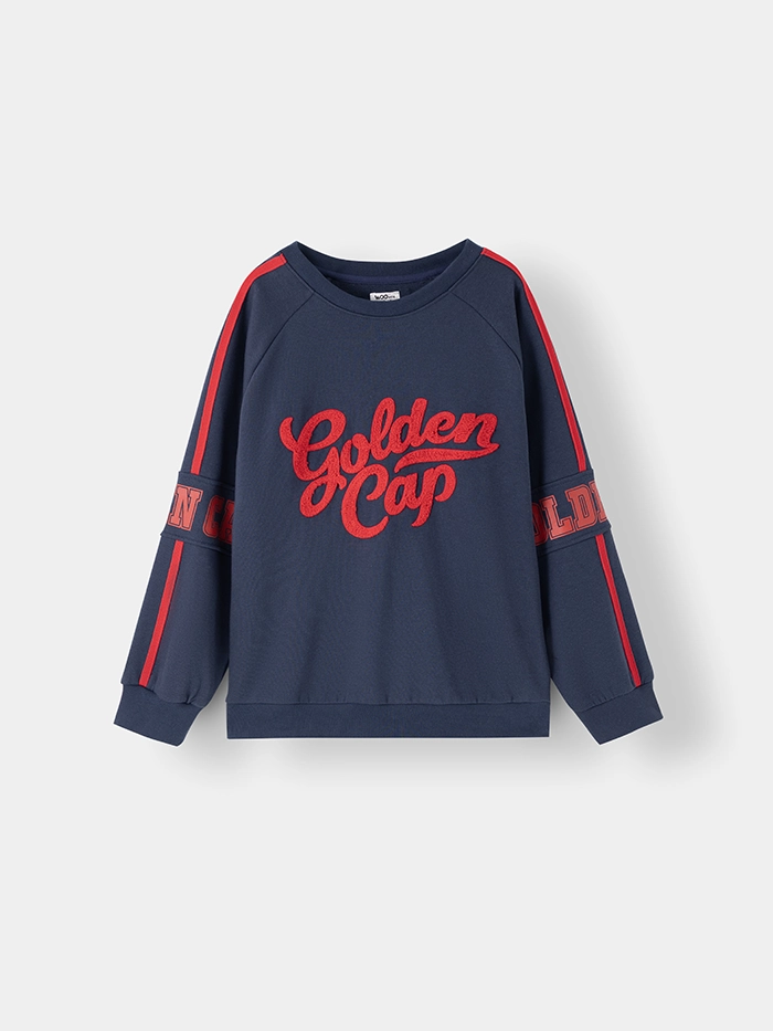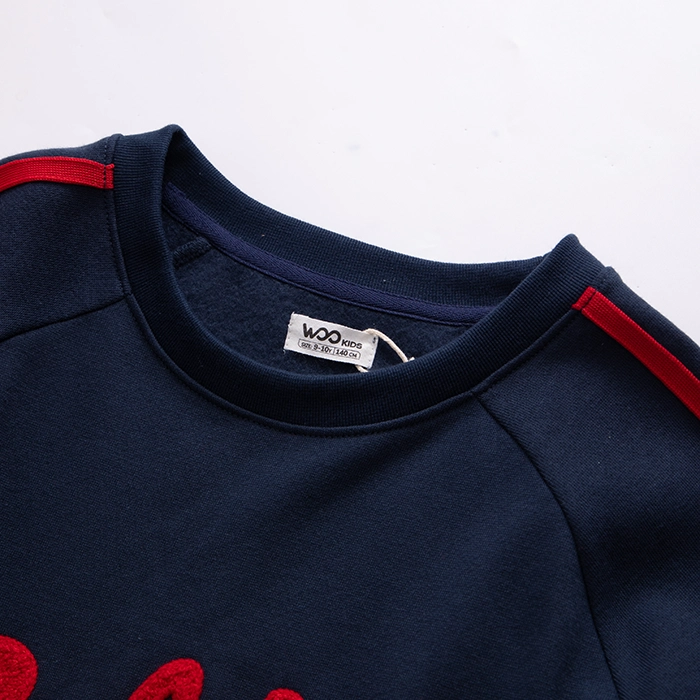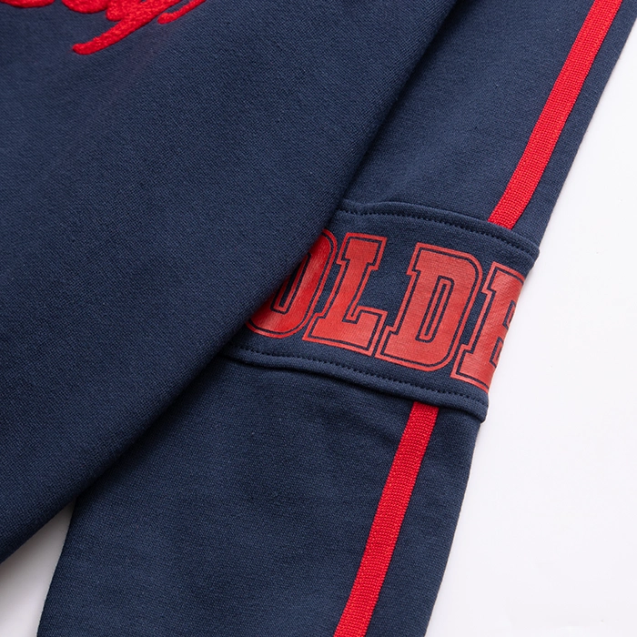 • Hoạ tiết: Hình in chữ trước ngực, tay áo phối sọc đỏ
