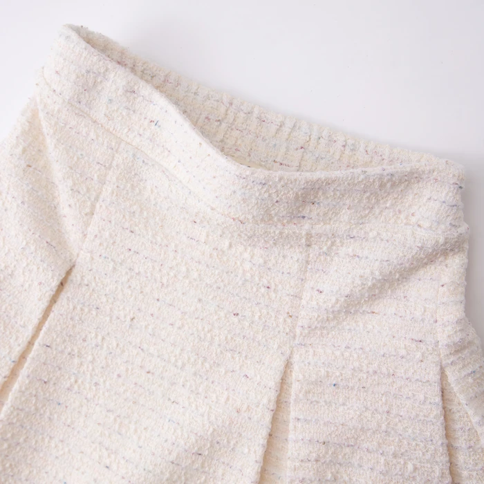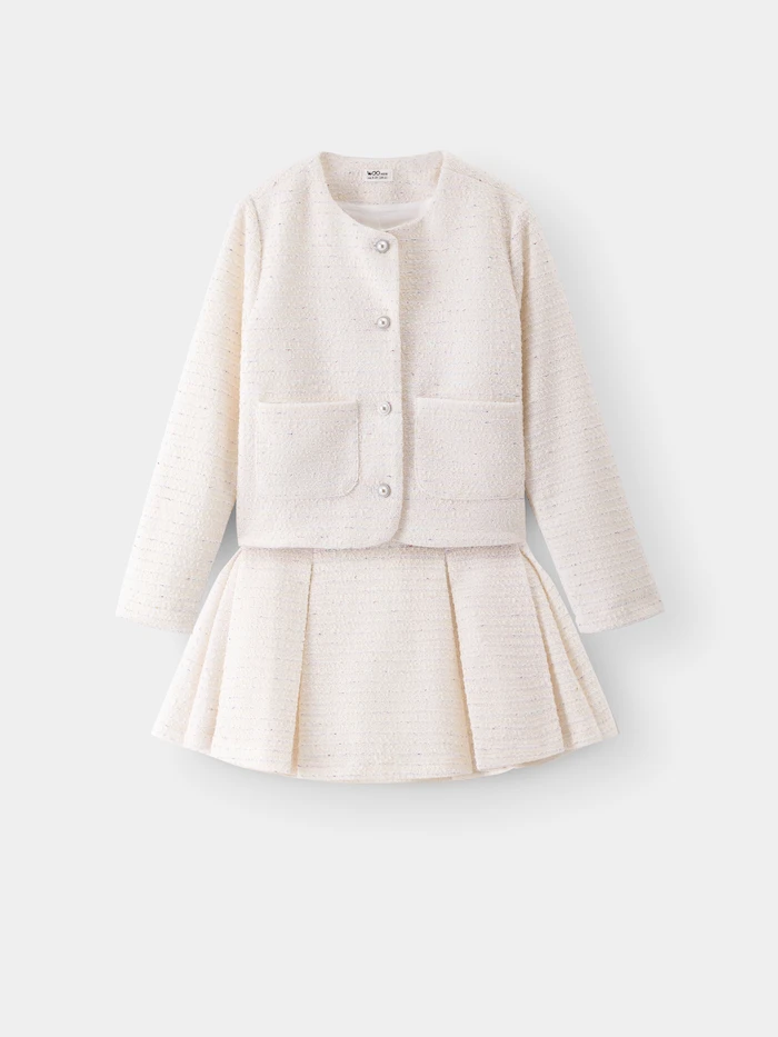 • Thiết kế: Set bộ gồm áo khoác dạ tweed và chân váy cùng màu